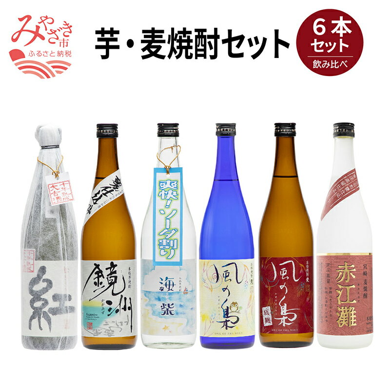 【ふるさと納税】芋、麦焼酎飲み比べ6本セット<紅きらら(芋)、鏡洲(芋)、海柴(芋)、風の梟(麦)、風の梟総麹(麦)、赤江灘(麦)>