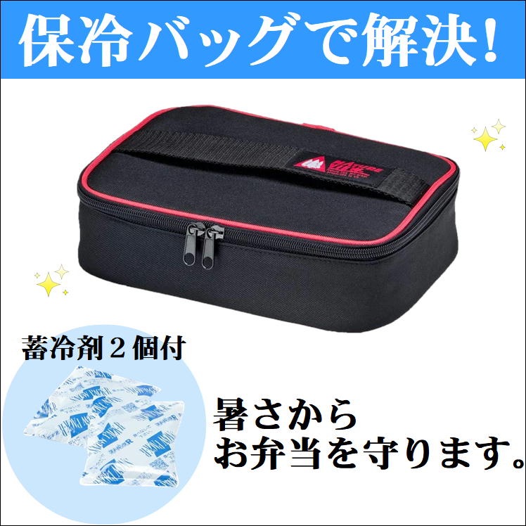 保冷 バッグ ランチ ボックス 保冷剤 弁当 ランチバッグ 大容量 おしゃれ【弁当箱 1段】昼 ご飯 お弁当 便利 グッズ クール 保冷バッグ 蓄冷剤 バック 人気 シンプル 通勤 通学 遠足 運動会 アウトドア アイテム ランチバッグ RANCHI BAG BOX 暑さ 対策 送料無料 暑さからお弁当を守ります!断熱材と蓄冷剤とW効果で冷たさをキープ ●メンズランチBOXの1段式弁当箱(約21×16.5×高さ11cm)が入る保冷ランチバッグ断熱材と蓄冷剤のW効果で冷たさをキープ蓄冷剤2個付き(50g×2個)梅雨時から夏場にかけてお弁当の雑菌の繁殖を抑制する【クールランチバッグの特徴】1.お弁当箱以外に缶ジュースやフルーツを入れることもできます。
