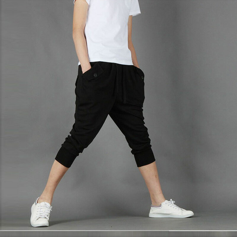 送料無料 クロップドパンツ スウェットパンツ ジョガーパンツ メンズ 男性用 ボトムス 7分丈 無地 カジュアル シンプル おしゃれ ポケット ウエストゴム ボタン 単色 普段使い ルームウェア 大きいサイズあり ブラック グレー