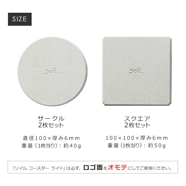コースター (2枚セット) soil ソイル 珪藻土 コースター ライト サークル スクエア 丸 四角 速乾 おしゃれ ギフト 【正規品】