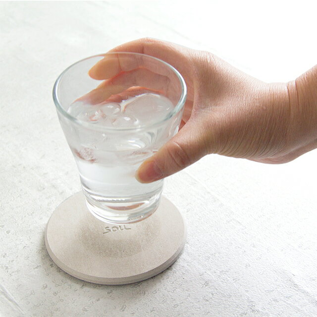 グラスに冷たい飲み物を入れた時にできる表面の結露を、珪藻土の持つ優れた吸水性で、すばやく吸収。