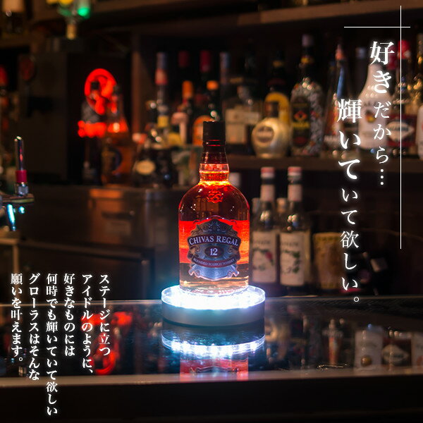 光るボトルステージ GLOWLASS【LED 光る台座 光るボトル 光る ハーバリウム 台座 光るコースター ディスプレイ スタンド 光るお酒 バー カクテル お酒 ボトルが光る お洒落 おしゃれ インテリア レインボー 電池式 ライト クリスタルパズル クリスタルパズル用】