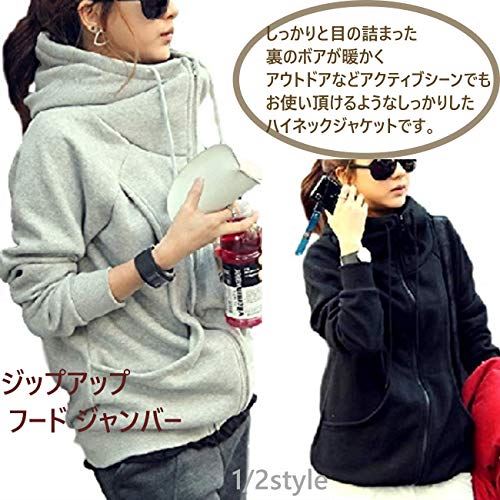 [ニブンノイチスタイル] ブルゾン ジャケット コート 裏 ボア 防寒 スタンド カラー レディース チャコールグレー