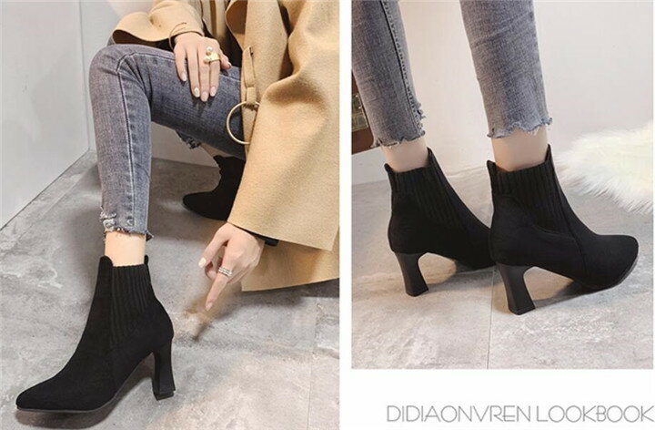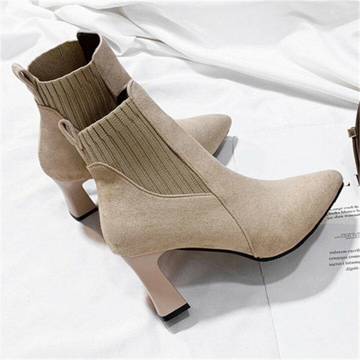 エレガント 韓国 ストレッチ ニット ピンヒール 学院風 おしゃれ カジュアル ショートブーツ(T)