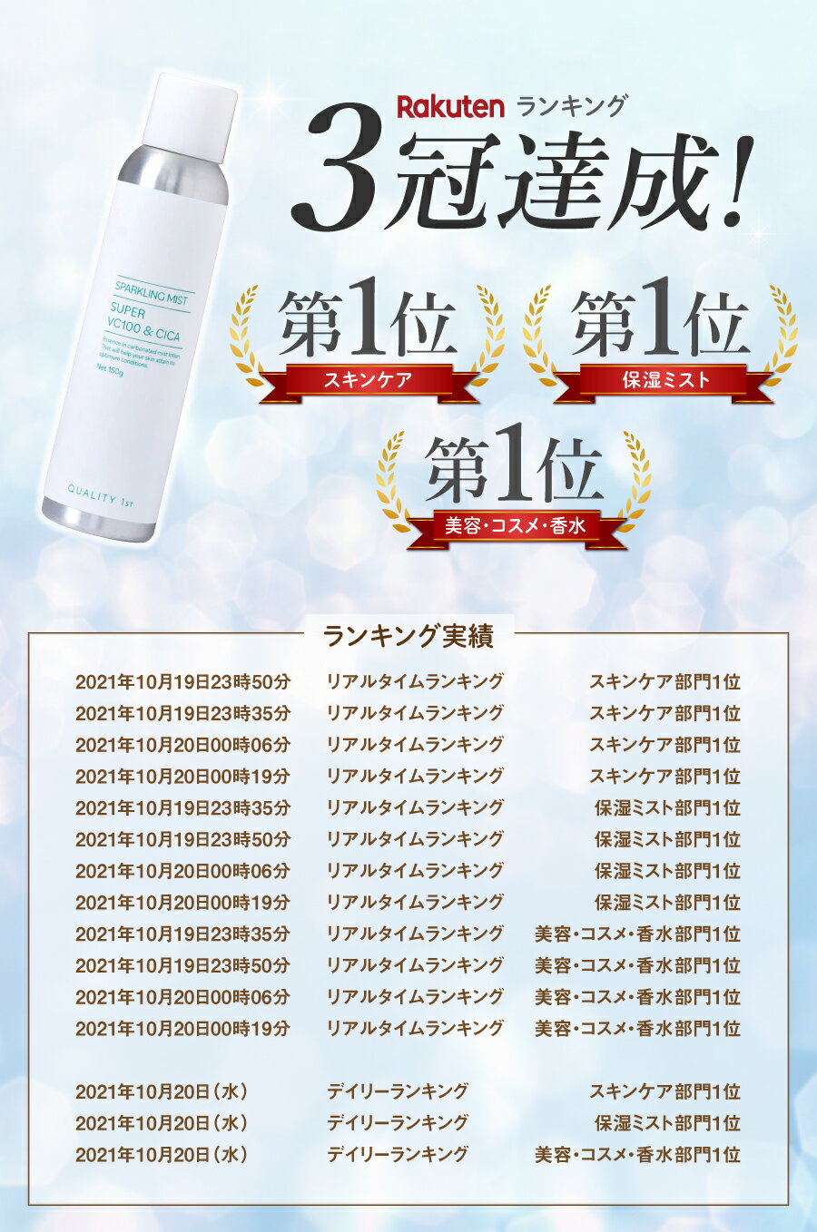 化粧水 ミスト スプレー 炭酸ミスト 150g 高濃度炭酸17800ppm エイジングケア マスク荒れ クオリティーファースト 高濃度ビタミンc シカ cica ミストスプレー 炭酸美容 毛穴ケア 日本製 送料無料 ポイント消化 炭酸ミスト化粧水