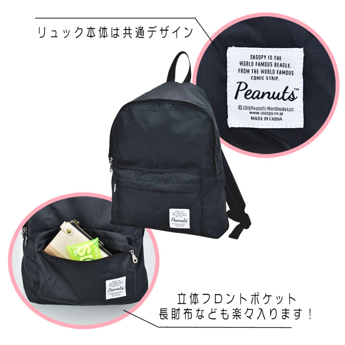スヌーピー リュック リュックサック デイパック 寝そべり(SPZ-1161) ナイロン 小さめ a4 ロゴ ファスナー 20L 黒 収納バッグセット 女子 男子 男女兼用 高校生 中学生 レディース 女性 大学生 旅行 トラベル お買い物 かわいい 可愛い おしゃれ 人気 キャラクター グッズ