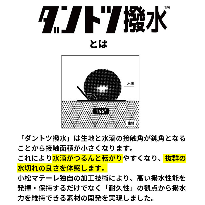 ・傘生地には世界的ファブリックメーカー「小松マテーレ株式会社」と共同開発した超耐久撥水加工「ダントツ撥水」を採用。