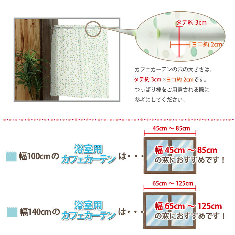カーテン 浴室用 カフェカーテン 【幅140cm×丈60cm】ドット柄 遮像