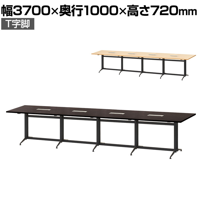【法人様限定】大型 会議用テーブル T字脚 3700×1000mm 配線ボックス付きフリーアドレスデスク オフィスデスク 事務机 会議テーブル ミーティングテーブル 会議机 会議室 会議デスク 打ち合わせ 商談 幅370cm テーブル オフィステーブル 作業テーブル ワークテーブル