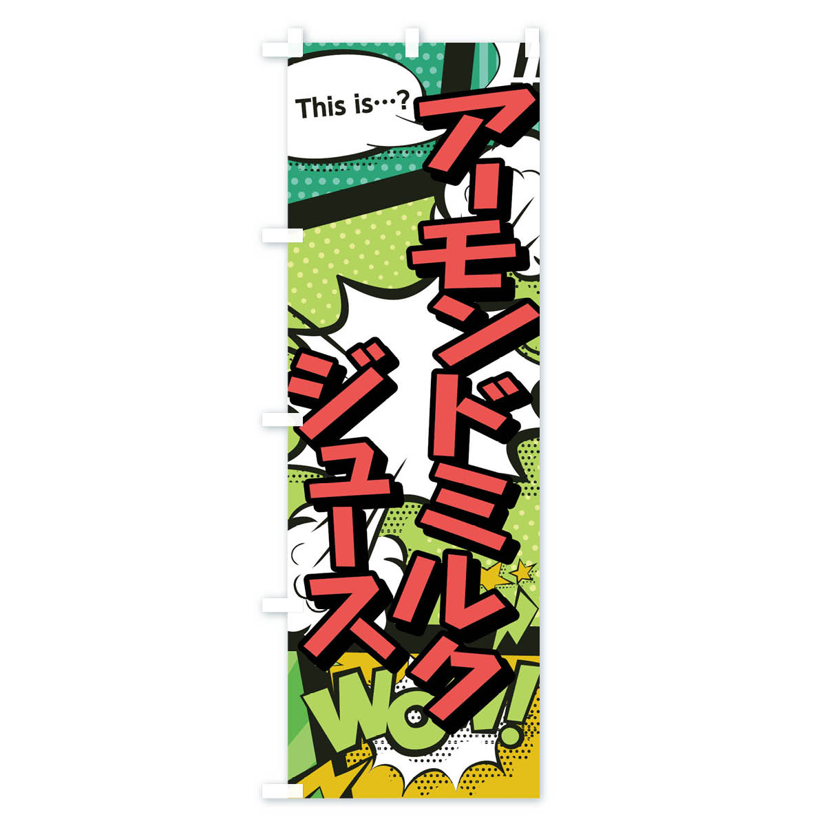 【ネコポス送料360】 のぼり旗 アーモンドミルクジュースのぼり 0U0N this is…? WoW(アメコミ風 マンガ風 フルーツジュース内容・記載の文字アーモンドミルクジュース(this is…? WoW(アメコミ風 マンガ風 コミック風))印刷自社生産 フルカラーダイレクト印刷またはシルク印刷デザイン【A】【B】【C】からお選びください。
