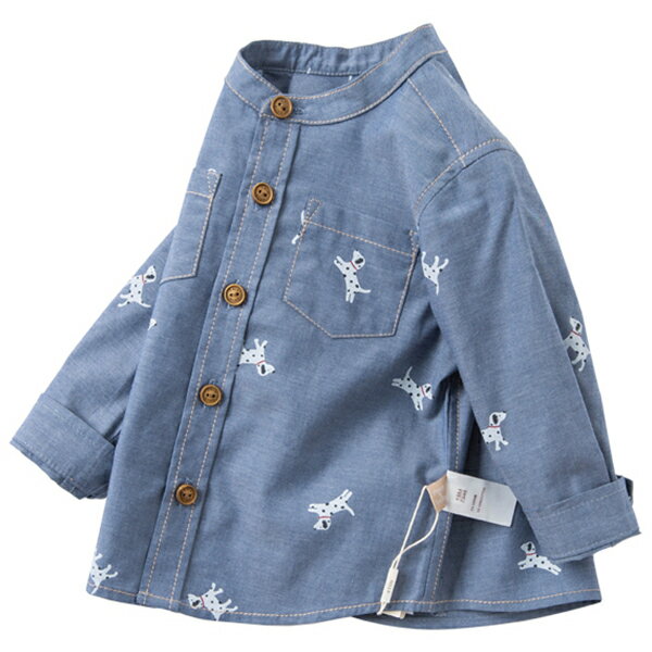 男の子 長袖 シャツ トップス 子供服 犬 デニム風 春 秋 70 80 90 100 110 120 130 cm dba16228 dave&bella デイブ ベラ シンプル 上品