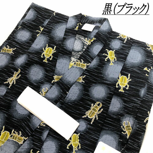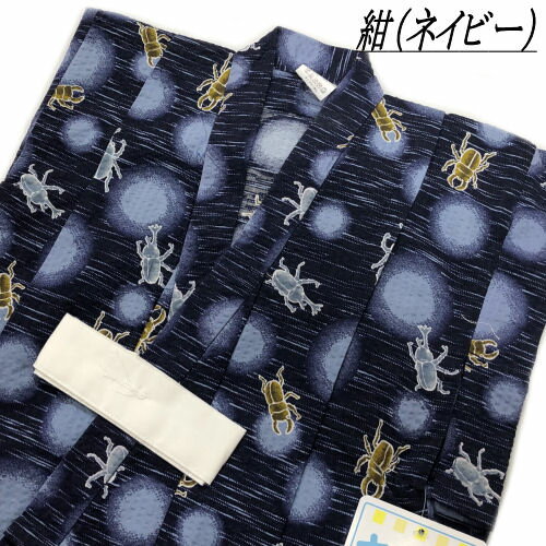 ゆかた こども サイズ90 黒 紺 くわがた かぶとむし 一ツ身 浴衣 男の子 キッズサイズ 1才から2才用 90cm 子供 綿 夏 祭り 着物 男児 乳児 赤ちゃん かわいい おしゃれ レトロ 子供浴衣 適応身長85cm〜95cm 新品 ぼかし染め