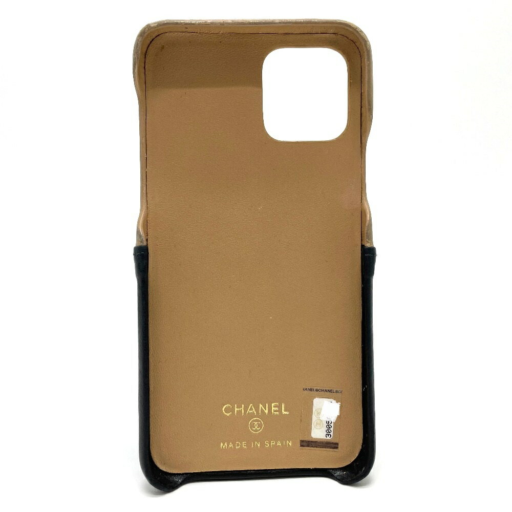 CHANEL シャネル AP1453 CC ココマーク マトラッセ バイカラー iPhone 11 Pro iPhoneケース ラムスキン レディース ベージュ×ブラック 【中古】
