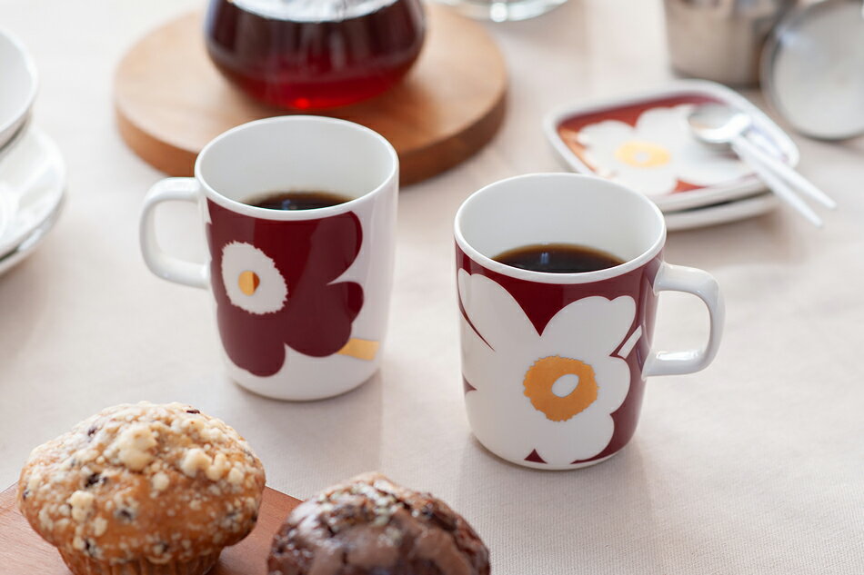 【SALE】マリメッコ マグ 2個セット(marimekko)ユフラ/Juhla ウニッコ ワインレッド×ゴールド