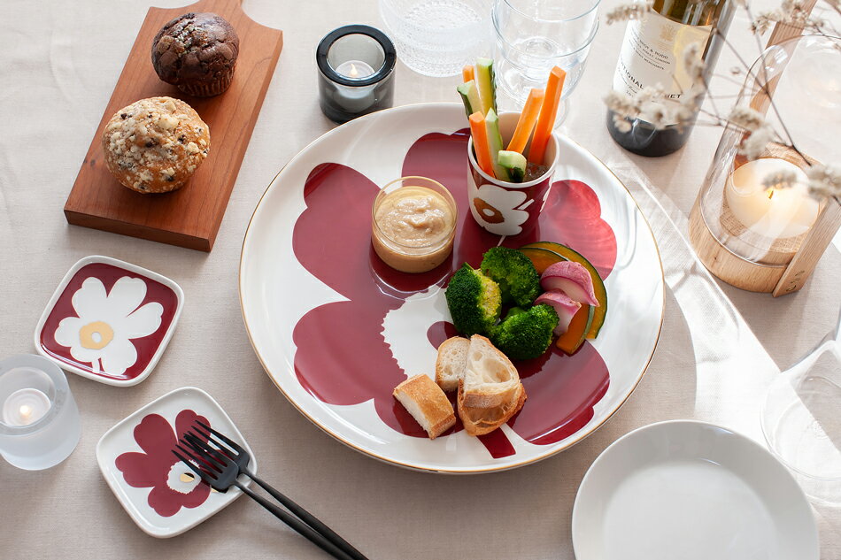 【SALE】マリメッコ プラター32cm(marimekko) ユフラ/Juhla ウニッコ ワインレッド×ゴールド