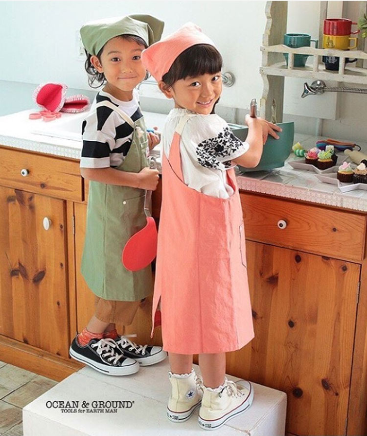 子供 エプロン 三角巾 セット キッズ エプロン OCEAN&GROUND オーシャンアンドグラウンド 1918003 1918005 入園 入学 バッククロス 男の子 女の子 三角巾 ゴム 子供用 おしゃれ かわいい 100 110 120 130 140 150 160 小学生 中学生 幼稚園 保育園 調理実習 無地 デニム