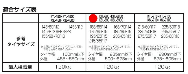 ●商品サイズ(約):幅590×奥行360×高さ1270mm ●重量:3700g ●収納の目安:軽・コンパクト 普通車 ミニバン用(4本) ●材質 パイプ:塩化ビニル樹脂被覆鋼管スチールパイプ ジョイントパーツ:ABS樹脂、ポリアセタール ●耐荷重:120kg タイヤラック(KTL-450/小型車用タイヤ4本)はコチラ タイヤラック(KTL-710/ミニバン、ワンボックスカー用タイヤ4本)はコチラ