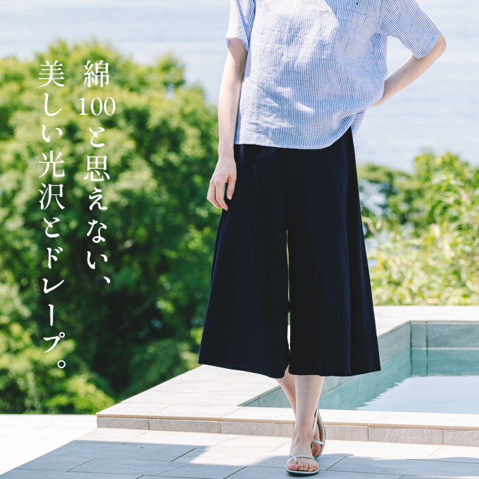 [ 接触冷感 ガウチョパンツ 七分丈 レディース ] 強撚糸コットン100% ガウチョ パンツ クロップド丈 / 日本製 40代 50代 60代 30代 女性 ファッション 涼しい ワイドパンツ スカンツ スカーチョ 大きいサイズ 春 夏 秋 ボトムス