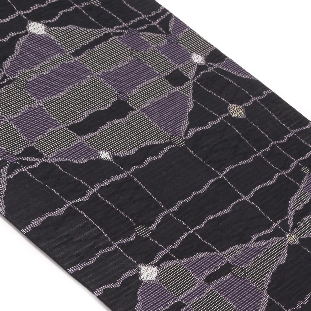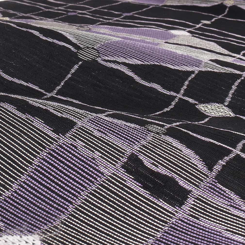 紺地に紫色をベースにモダンに織り込んだ本商品は、シックなムードの着物にピッタリです。